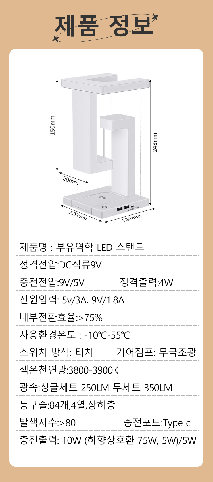 무선충부상 스탠드 수납 LED 라이트